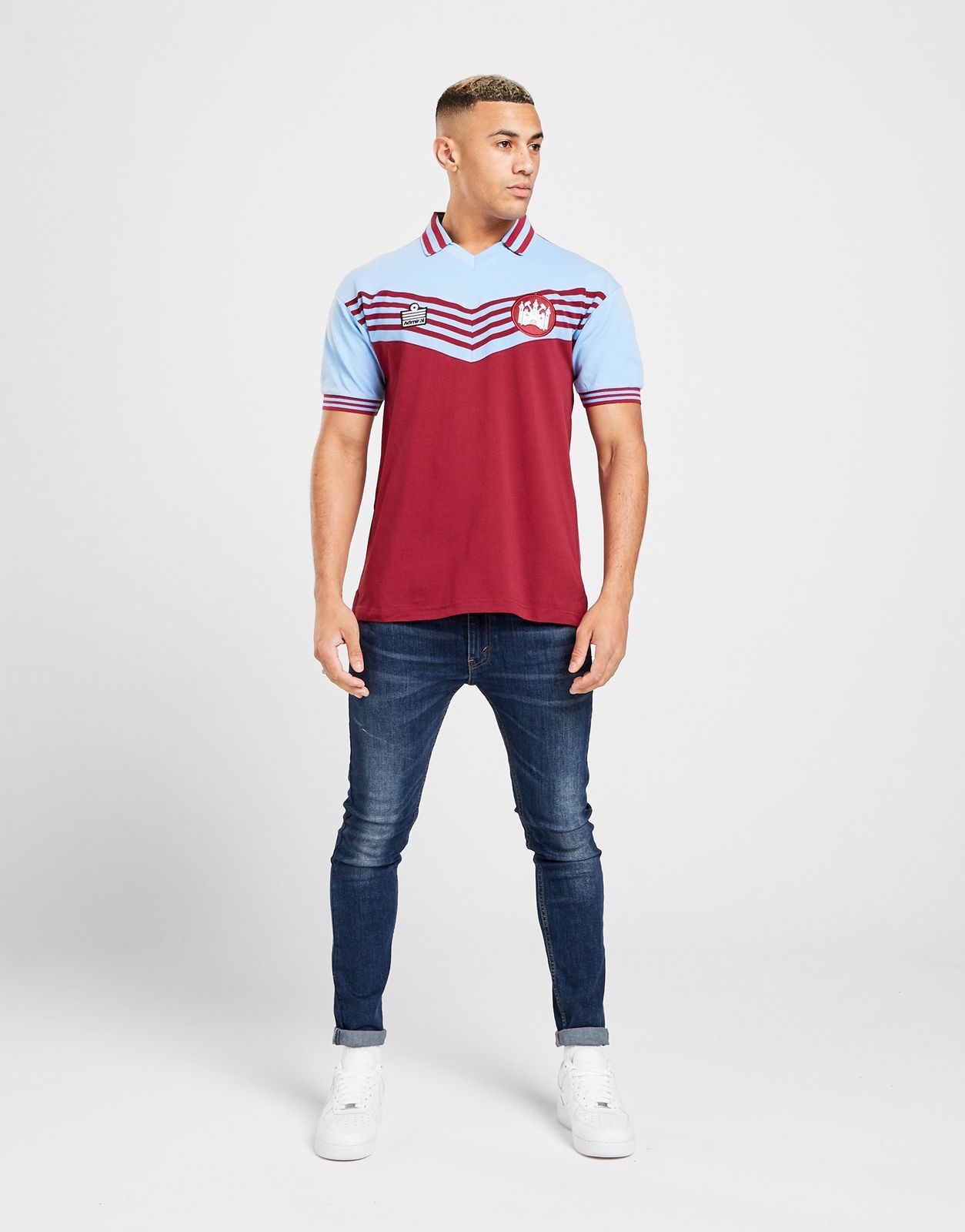 Straight from the archives, this shirt comes in the team's signature claret and sky blue colours. Made from a lightweight poly, this vintage-inspired shirt features an open collar and short sleeves. Finished with the club sponsor and team crest to the chest.