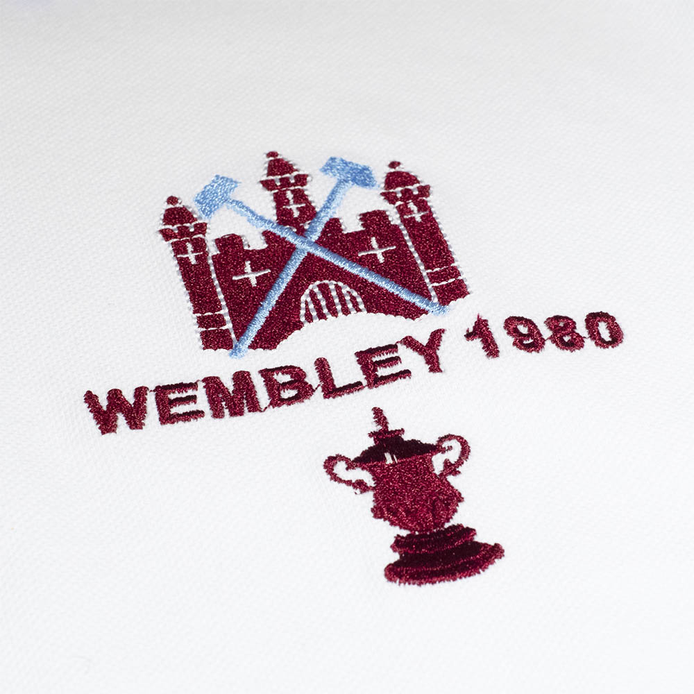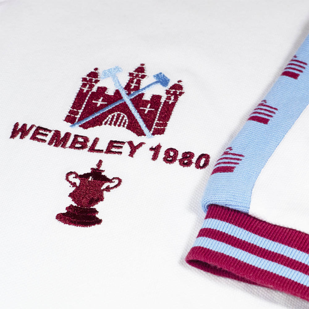 The embroidery also includes a “WEMBLEY 1980” detail above a depiction of the trophy Brooking et al would go on to lift, all on a change shirt with stylings that have stood the test of time.