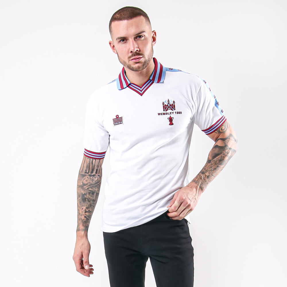Featuring several hallmarks of the era - Admiral’s logo taping, claret-and-blue collar and cuffs, embroidered logos - the white design echoes the article worn by Trevor Brooking as the England international’s improvised header won the Cup for his beloved Hammers, defeating London rivals Arsenal.