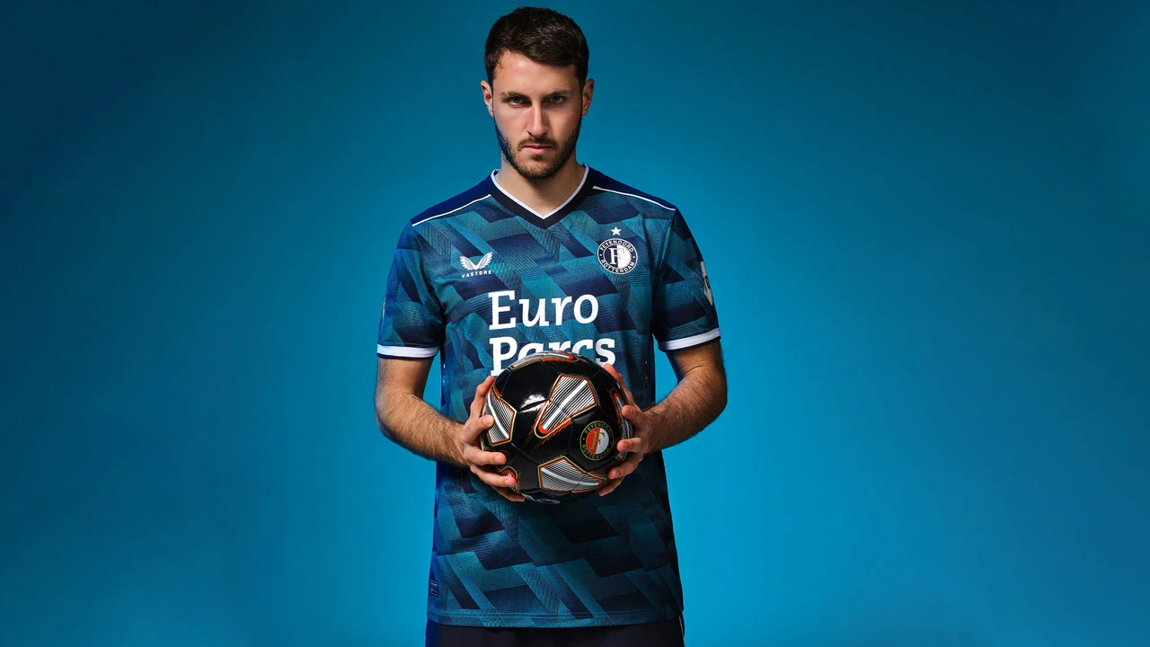 is the new Castore Feyenoord 23/24 Away shirt. The Rotterdam-based Dutch Eredivisie champions 2023-24 primary-change release has tonal blue patterning throughout - with the exception of small panels on the shoulders, the neck and cuffs -... This is the...