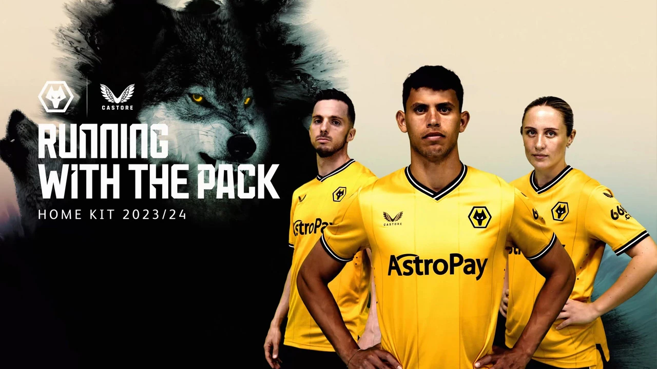 the historic days of the 1980s and iconic Wolves legends like Andy Gray, Mel Eves, and Kenny Hibbitt. Bespoke designed by Castore, the kit displays AstroPay on the front and 6686 Sports branding on the sleeve. The complete outfit includes black shorts...