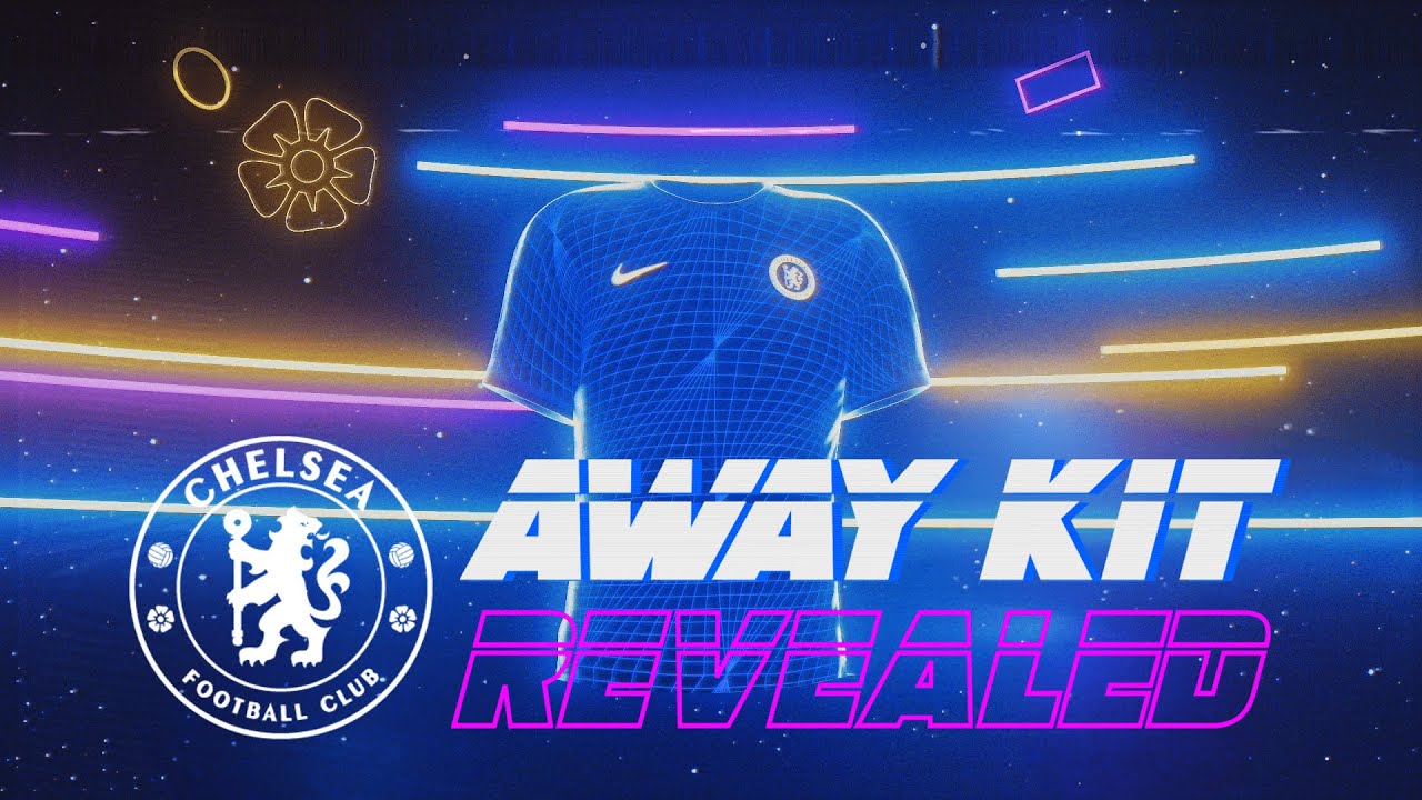 Chelsea's Away kit for the 2023/24 season. This new design combines contrasting pitch blue and soar shades, featuring a diamond geometric pattern reminiscent of Chelsea's '90s kits and the King's Road glamour. The subtle gold... Introducing Chelsea's...