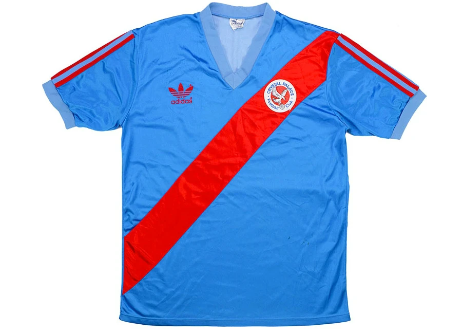 Crystal Palace 1980-83 away shirt by Adidas with great vintage sash design as worn when the side finished bottom of the First Division in '81 and then struggled in the Second Division in '82 & '83 with 5 different managers being at the helm during this...