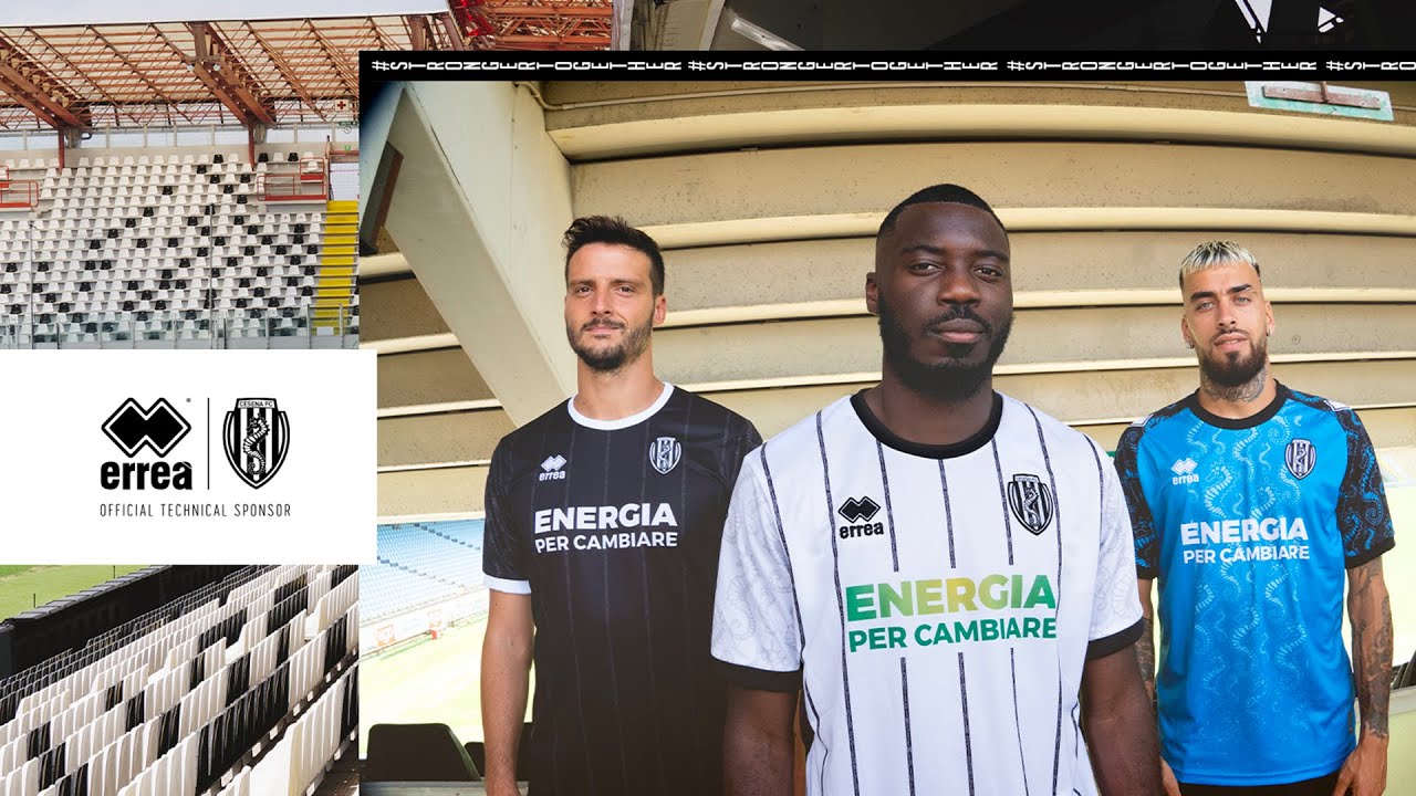 This is Italian Serie C side Cesena Football Club’s 2023-24-season wardrobe. The new Erreà home shirt is in white with a thin-stripe effect in black that refers to the 1986-87 release, also featuring a grey seahorse (crest and nickname)... This is...