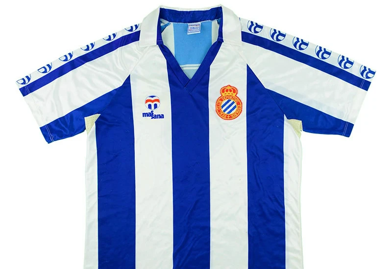 Espanyol player shirt by Massana believed to have been issued to or worn by a #5 between 1984-89. This great vintage design was worn during the mid-late 80's when the side finished as high as 3rd in La Liga and reached the UEFA Cup Final losing out to...
