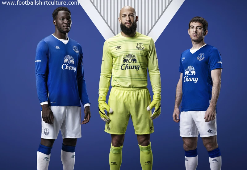 This is the new Everton 16/17 Home kit by Umbro, who have drawn inspiration from Goodison Park for the Blues’ 2016/17 home kit. The new strip celebrates the home of the Blues and includes the co-ordinates of the ‘Grand Old Lady’ in the back of the neck...