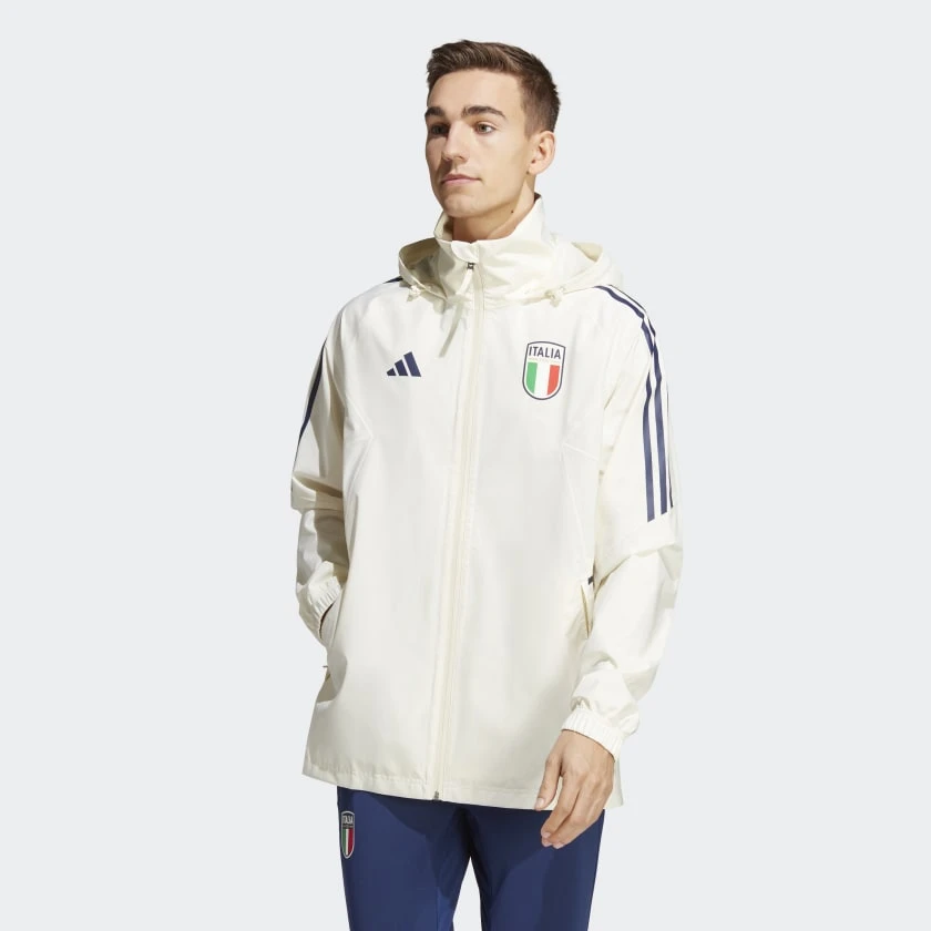 The best football players must be ready to perform in every condition. That's why adidas included this Italy Condivo 23 Rain Jacket as part of Italy's training kit. RAIN.RDY uses advanced waterproofing to channel the rain away from your body and keep...