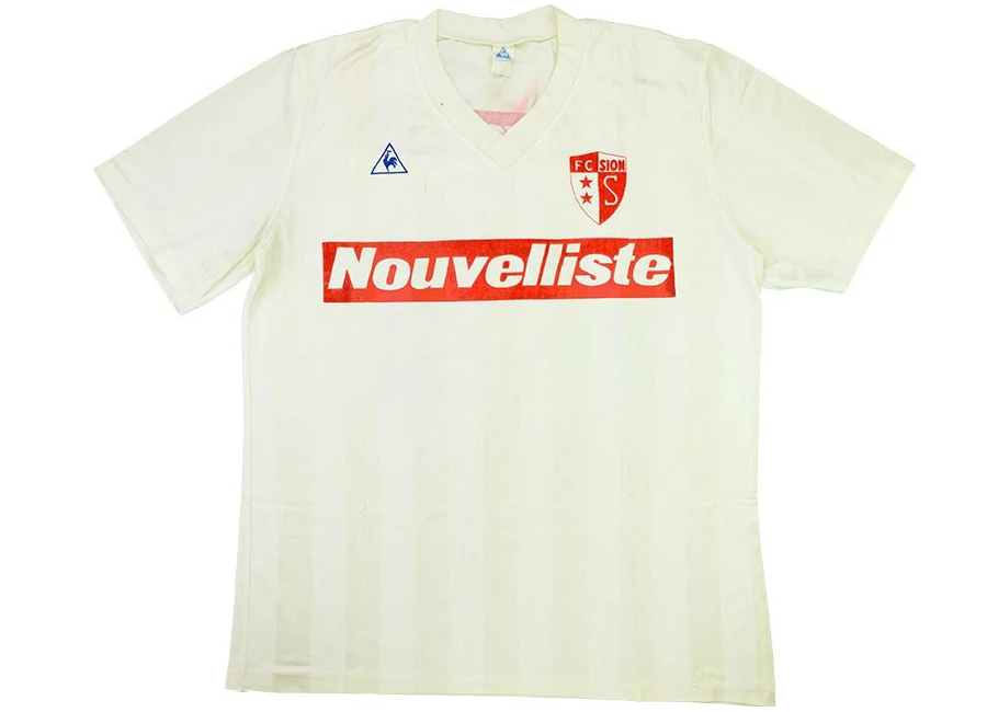 FC Sion 1985-86 player shirt by Le Coq Sportif believed to have been issued to or worn by #9 during the season the side won the Swiss Cup thanks to a 3-1 victory over Servette, which made up for a disappointing 8th place finish in the League under boss...