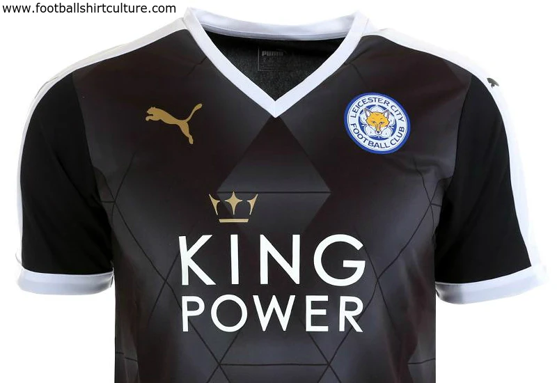 Leicester City revealed the new 2015/16 away football kit by Puma. The shirt carries hints of white and gold and features a diamond pattern across the chest, with a white V-neck collar and white stripes running down the shoulders, complete with King...