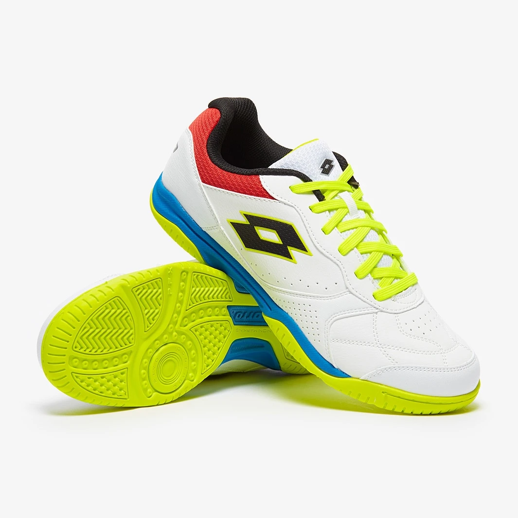 These are the Lotto Tacto 300 VI IN futsal shoes in White/Black/Safety Yellow, featuring a synthetic leather upper for superior touch and comfort. With its synthetic leather upper, the Lotto Tacto 300 VI IN gives you the sensitivity you need to control...