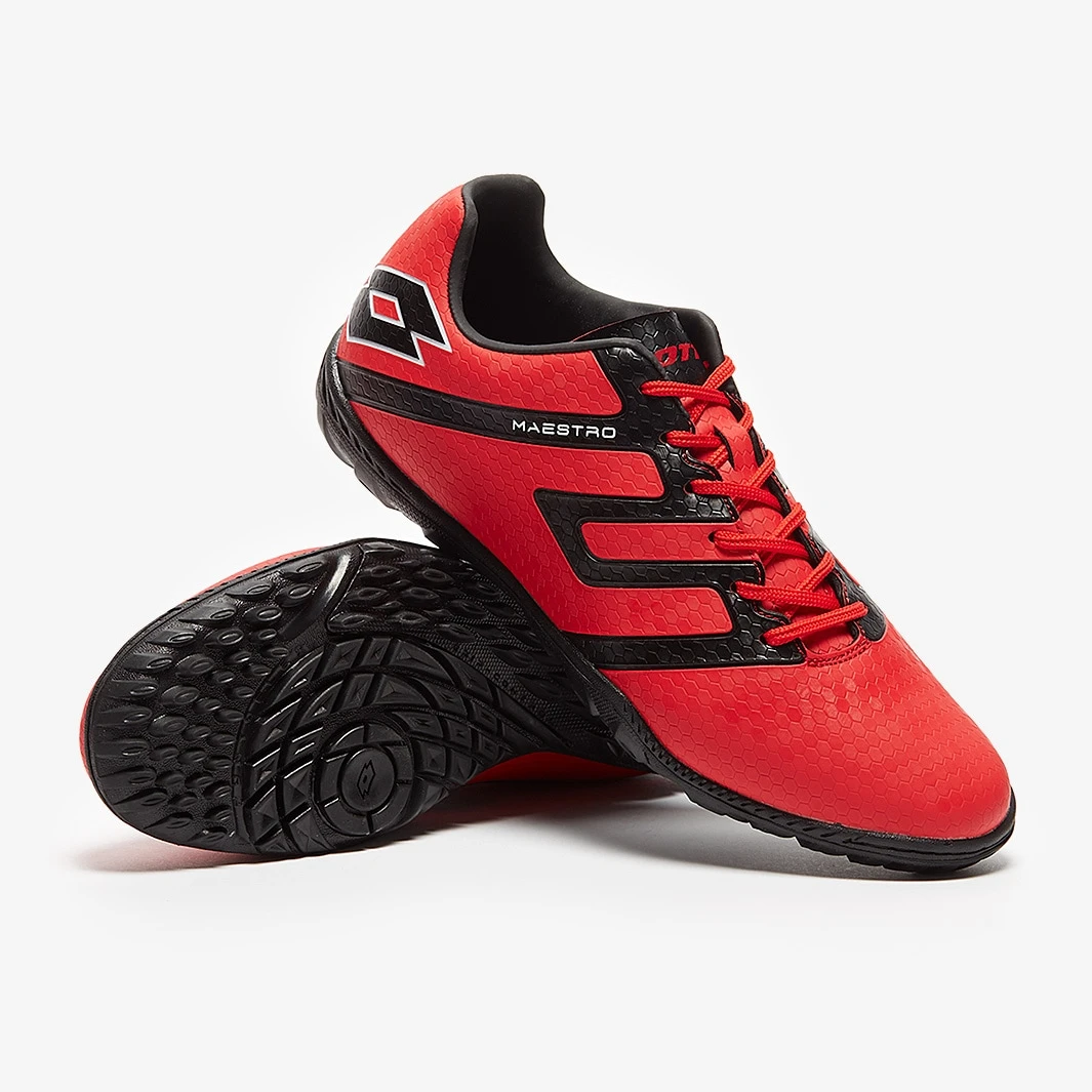 Control the game wearing Lotto Maestro 700 IV TF turf football shoes in Flame Red/All Black, featuring a new outsole for superior traction on hard surfaces. Designed for creative players, the Lotto Maestro 700 IV TF continues the Maestro range’s focus...