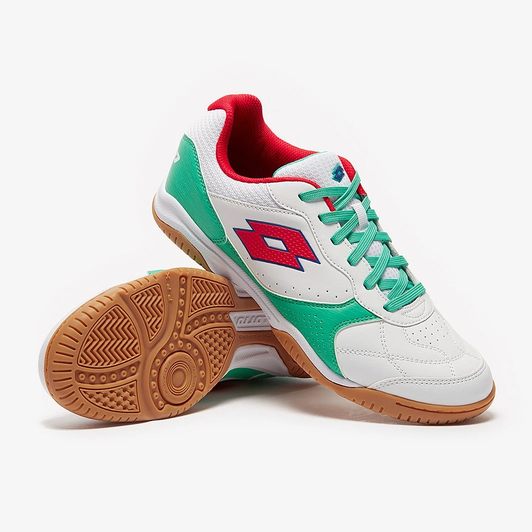 These are the Lotto Tacto 300 VI IN futsal shoes in White/Red Poppy/Green, featuring a synthetic leather upper for superior touch and comfort. With its synthetic leather upper, the Lotto Tacto 300 VI IN gives you the sensitivity you need to control the...