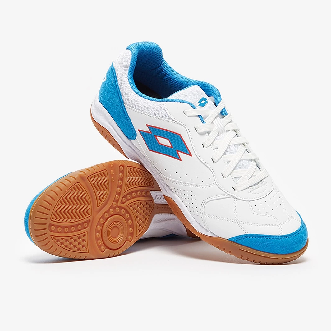 Master the small-sided game wearing Lotto Tacto 300 VI IN futsal shoes in All White/Diva Blue/Cliff Red, featuring a synthetic leather upper for superior touch and comfort. With its synthetic leather upper, the Lotto Tacto 300 VI IN gives you the...