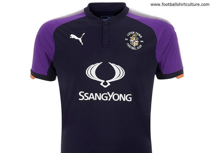 This is the new Luton Town 18/19 third football shirt by Puma. The third shirt features a navy stripe, with purple shoulders and orange detailing. The three 2018-2019 shirts will each feature a different sponsor next season. The third shirts are...
