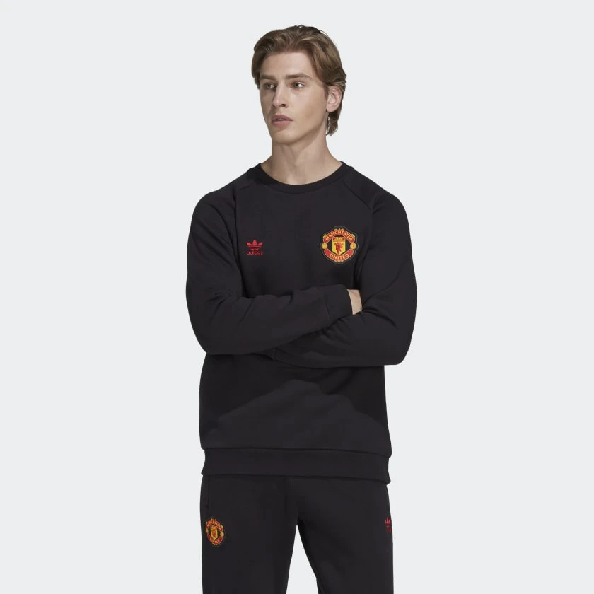 A classic at heart. A small Trefoil and embroidered Manchester United badge give this adidas Manchester United Essentials Trefoil Sweatshirt a timeless football look. Soft fleece fabric makes it perfect for layering over your club jersey. Ribbed...