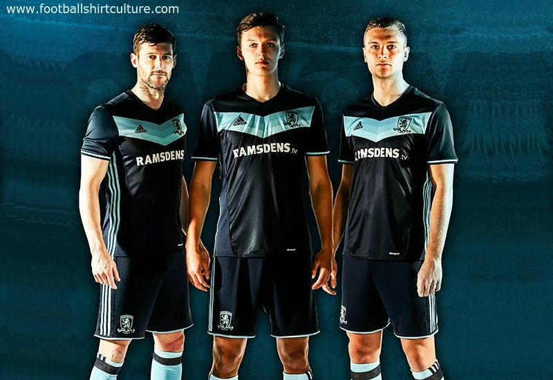 This is the new Middlesbrough FC 16/17 Away football kit by Adidas. The 2016/17 Boro Away shirt in Night Navy/indigo features an indigo and bright cyan chevron. The Boro crest features in bright cyan to complement the shirt, teamed with a matching...