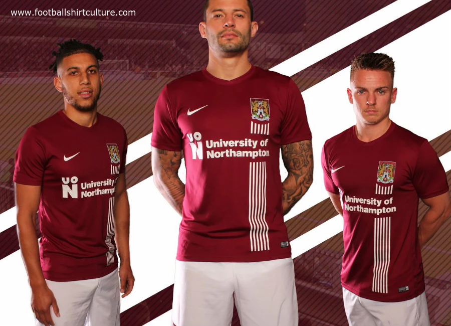 Northampton Town have unveiled their new Nike home kit as part of the club's annual Sixfields fun day. The shirt is mainly claret, but with six vertical white stripes going down from the base of the club crest to the bottom of the shirt. The kit is...