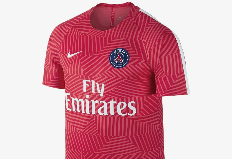 The Paris Saint-Germain Dry Graphic Football Shirt by Nike helps keep you comfortable on the pitch with light, sweat-wicking fabric and a mesh back panel. {gallery}nike-paris-saint-germain-dry-squad-ember-glow-white{/gallery}