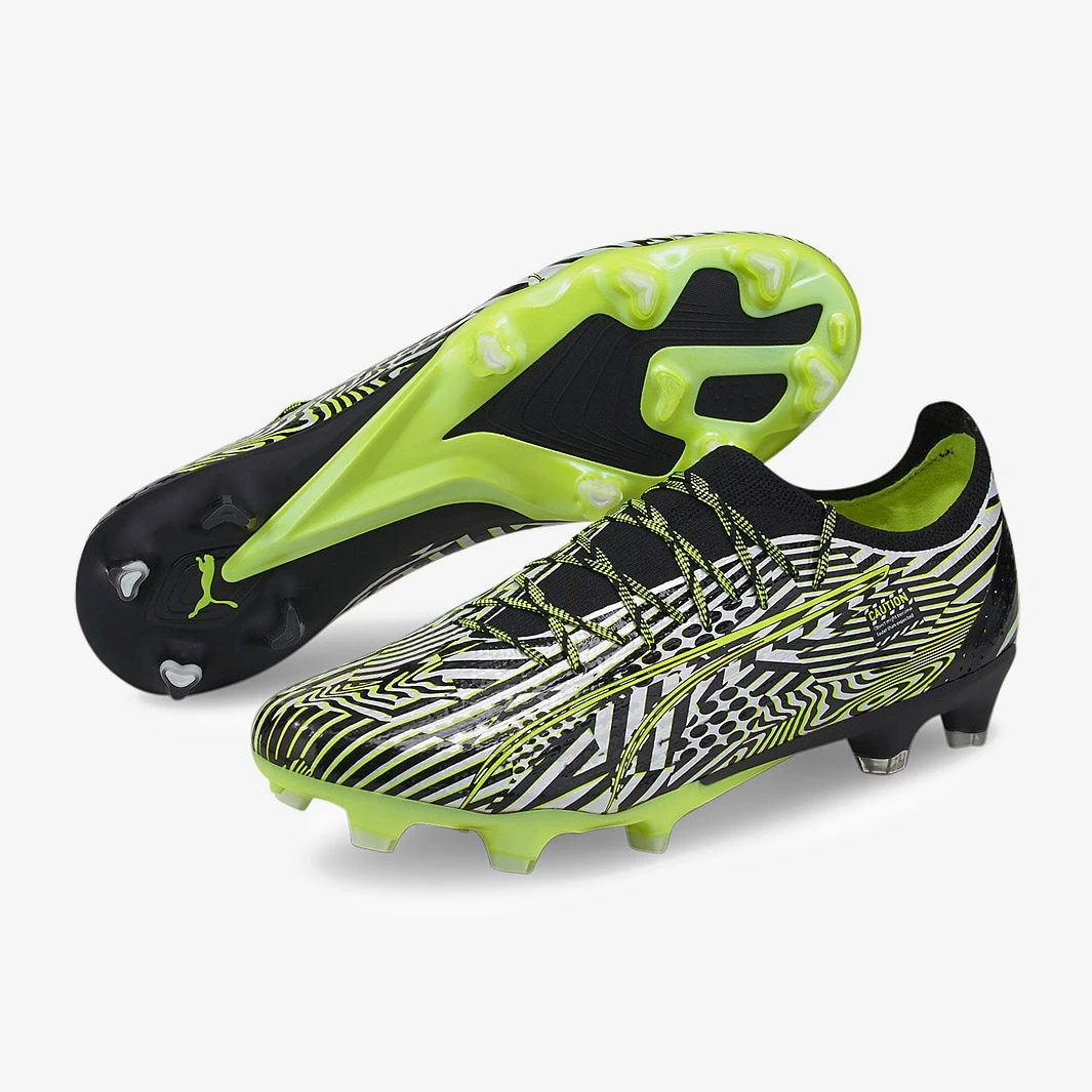 These are the new PUMA Ultra Ultimate Teaser FG/AG football boots in Puma Black/Puma White/Fizzy Light, featuring a limited edition dazzle camo colourway for a disruptive on-pitch look. Built for uncatchable speed, the Ultra Ultimate sees you race away...