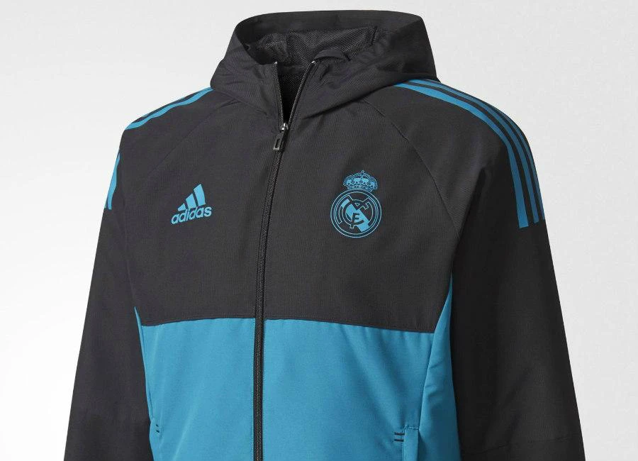This Adidas Real Madrid UCL Presentation Jacket is inspired by the one players wear when they travel between matches. Buy now Cut for a slim fit, the hooded jacket has a club crest on the chest....