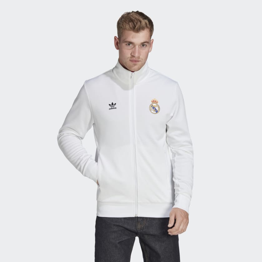 Sporting adidas pride mixed with love for Real Madrid, this classic Real Madrid Essentials Trefoil Track Top in White has that certain attitude. It zips right up to the top of the stand-up collar, and side zip pockets keep the little things close. A...
