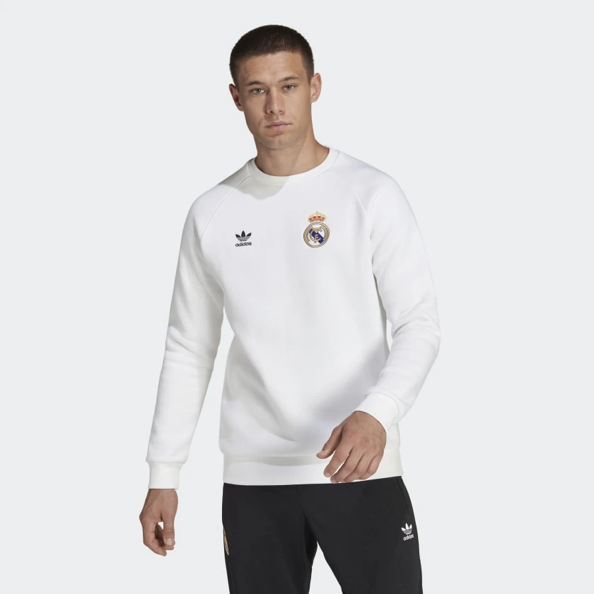 True adidas heritage fit for real football legends. Displaying a diminutive Trefoil and an embroidered club crest, this Real Madrid Essentials Trefoil Crewneck Sweatshirt keeps things clean and crisp. Built with soft fleece fabric and a comfortable...