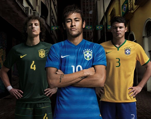 attempt to win the World Cup on home soil. Brazil will change to this kit at half-time in the friendly match with South Africa, having worn their Home kit in the first half. The Away shirt is in all blue - a nod to the Brazilian coast and surf culture...