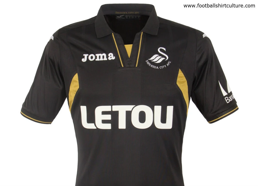Swansea City revealed their new 2017-18 third strip by Joma, which will be worn in the opening Premier League fixture at Southampton. Black polyester short sleeved shirt with gold polyester mesh underarm panels. Swansea City AFC crest embroidered in...