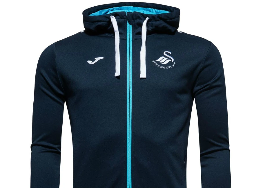 Swansea City A.F.C. 16/17 training jacket made by Joma. The jacket is designed with a upright collar and a hood, for protection against wind and bad weather. Furthermore it has zip pockets, for carrying your personal belongings. On the chest you can...