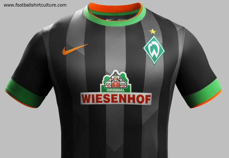 This is the new Werder Bremen 14/15 Away football shirt by Nike. The new away shirt combines Werder’s traditional green color. The body of the shirt consists of four black stripes over top a tonal gray chevron graphic. Werder’s famous green home colors...