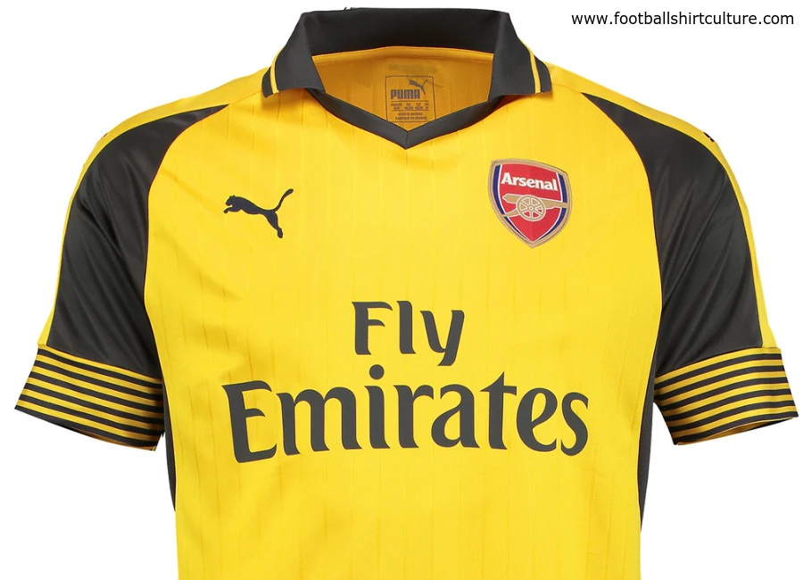 This is the new Arsenal 16/17 Away kit by Puma. The away shirt sees a return of the yellow so synonymous with the gunners away kits over the years, finished with gunmetal grey details including a fold over collar and grey sleeves. The body of the shirt...