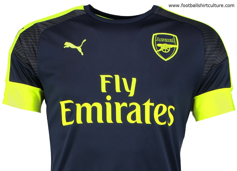 This is the new Arsenal 16/17 Third kit by Puma. The third kit is dark blue with bright yellow detail and the Puma Form Stripe along the sleeves and cuffs, with dark blue shorts and bright yellow socks. The third kit features the new ACTV-R technology,...