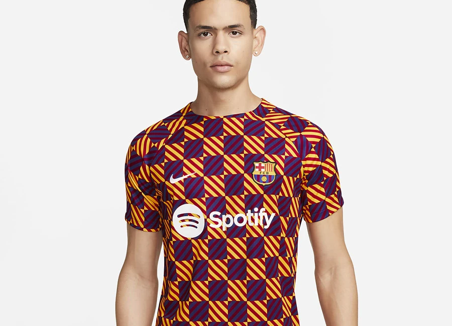 The latest FC Barcelona pre-match shirt features a dazzling design in an Amarillo/White colour scheme. Worn by the first team players to prepare for La Liga matches, this Nike shirt boasts the FC Barcelona crest patch and an embroidered Nike logo. It...