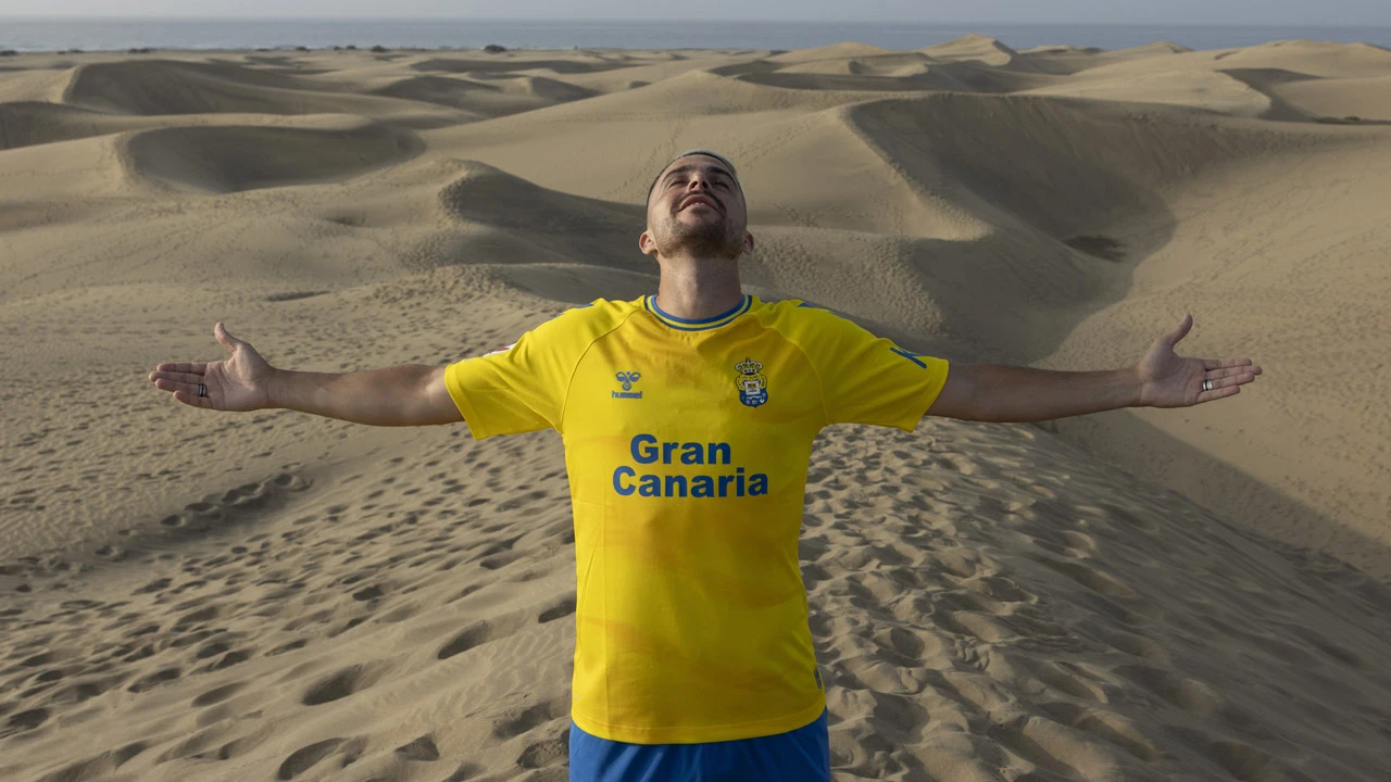 Las Palmas 23/24 Home shirt. The 2023-24-season primary release for the newly promoted Spanish La Liga side - produced by Hummel - is in the standard yellow with blue, this time with a base pattern that is intended to resemble the sand dunes on the...