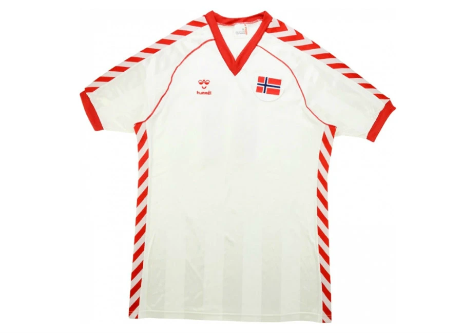 Norway 1985 player shirt by Hummel believed to have been match worn by Thoresen in the 1986 World Cup Qualification Group 6 match against Ireland played at Lansdowne Road, Dublin on the 1st May '85. Norway had beaten Ireland in Oslo last time out and...