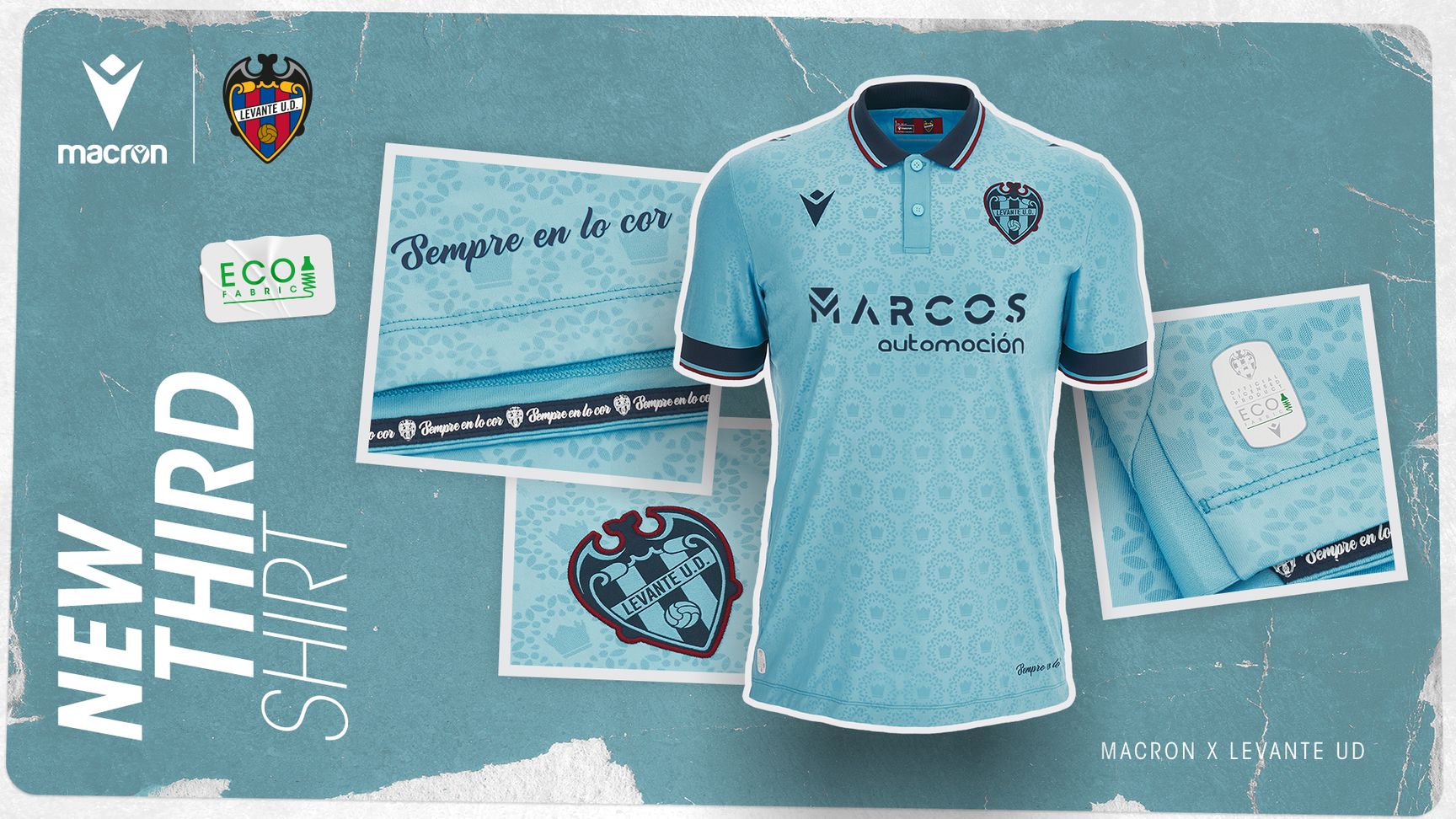 This is the new Levante UD 2023/24 Third shirt. The Levante UD third kit by Macron is inspired by the centenary of the Canonic Coronation of the statue of the 'Virgen de los Desemparados' (Our Lady of the Forsaken). The shirt features clear references...