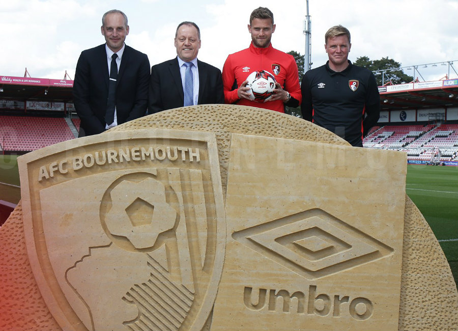 On Wednesday, Neill Blake was joined by AFC Bournemouth manager Eddie Howe, captain Simon Francis and Umbro’s head of UK soccer, Simon Johnson, at Vitality Stadium, where a giant sand sculpture of the two logos was unveiled to celebrate the announcement.