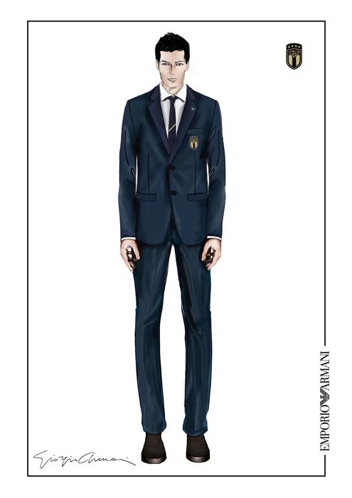 In all the official occasions, the members of the team will sport an Emporio Armani jersey suit, a shirt and an overcoat with detachable linings, all embellished with the Italian Football Federation’s shield. In addition, Armani designed shoes, a kit bag, a backpack, a belt, small leather goods and a pair of sunglasses.