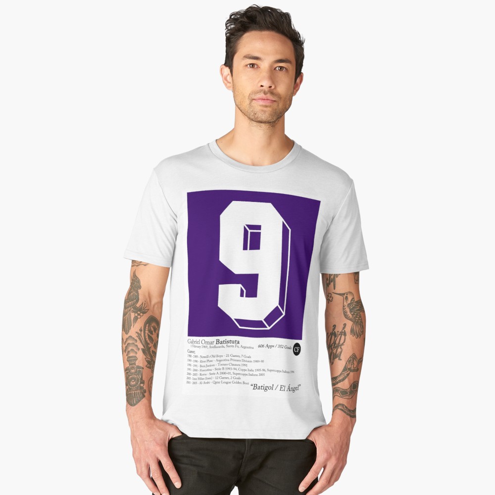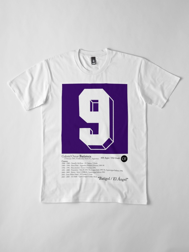 Football T-Shirt featuring Gabriel Batistuta's Number and Career by Matty723.