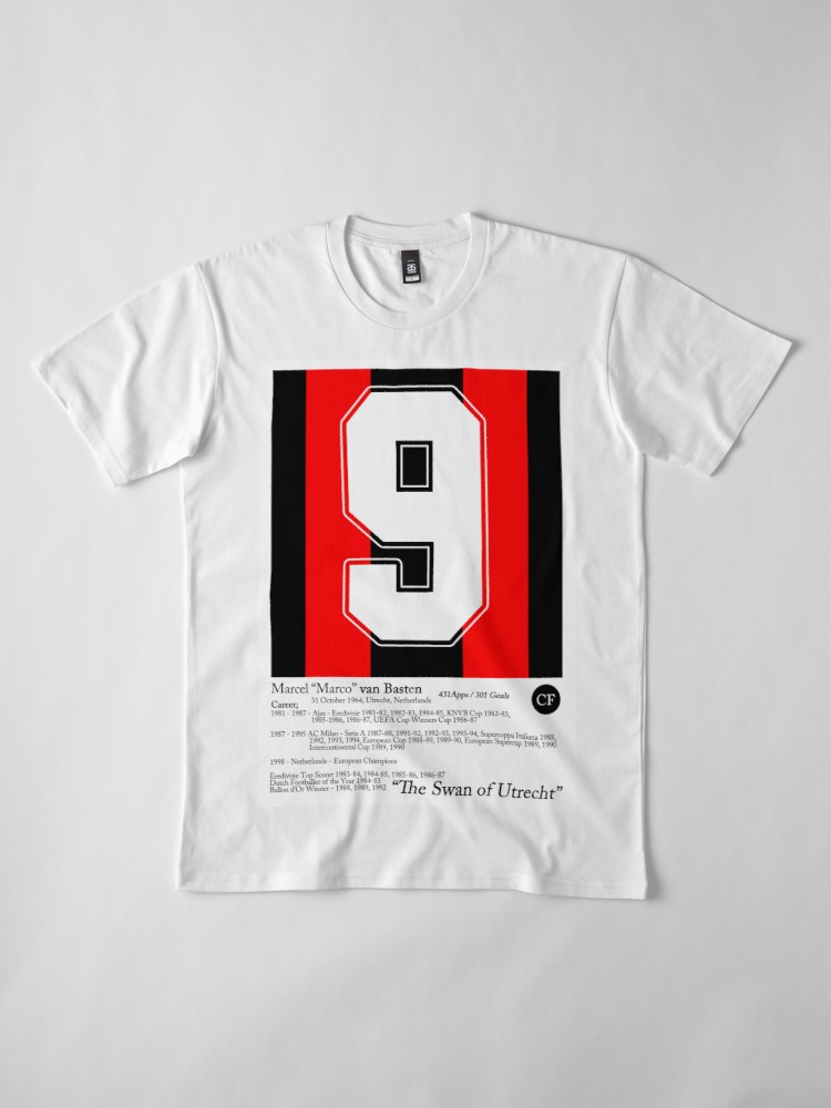 Football T-Shirt featuring Marco van Basten's Number and career by Matty723.
