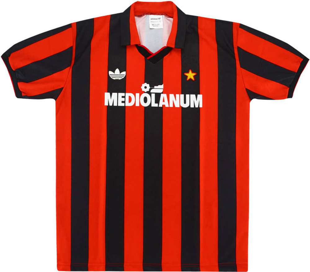AC Milan 1990-91 home shirt with iconic Mediolanum sponsor from the early 90's. The shirt was worn with the European Cup shield in 90-91 when the Rossoneri had to settle for runners-up in Serie A but did become the best team in the world by defeating Olimpia of Paraguay 3-0 in the Intercontinental Cup in Tokyo