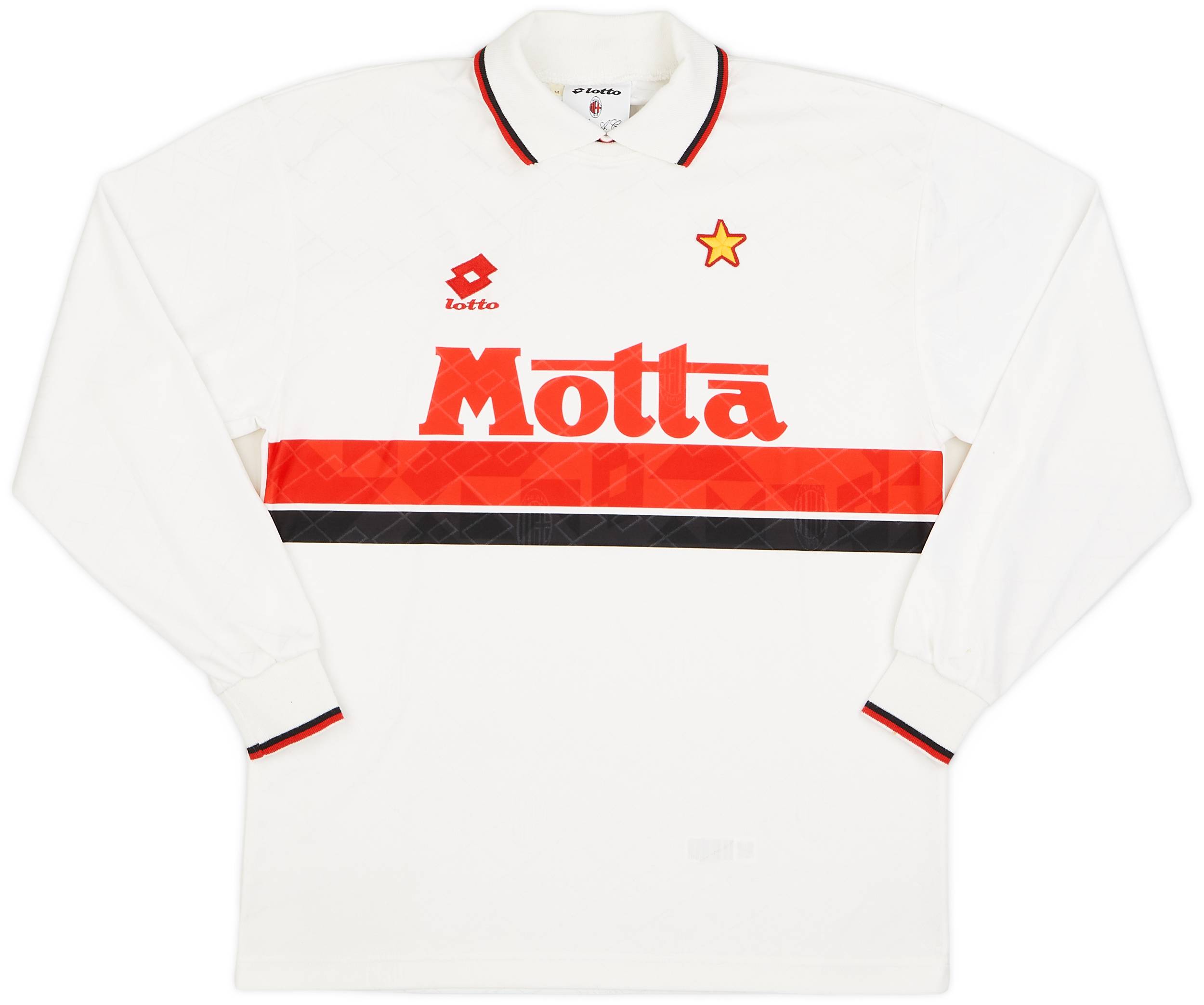 AC Milan’s away shirt from the 1993 to 1994 season was produced by Lotto and sponsored by Motta. The side, managed by Fabio Capello, achieved a league and European double, winning Serie A and the Champions League.
