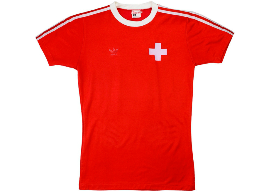 Switzerland 1977 player shirt by Adidas believed to have been match worn by Chapuisat in the friendly match against England played at Wembley on the 7th September 1977.