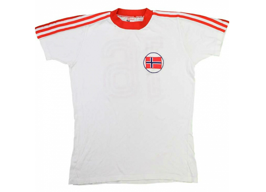 Norway 1978-79 player shirt by Adidas believed to have been issued to or match worn by a #16 during the period the side finished rock bottom in qualification for Euro 80' gaining a solitary point against Belgium.