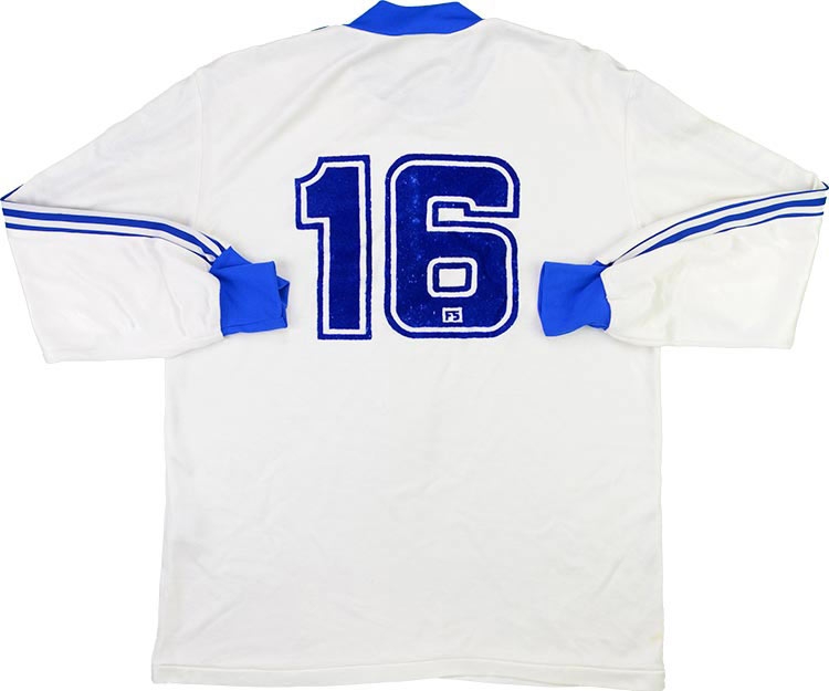 Olympique Marseille 1981-82 player shirt by Adidas believed to have been issued to or worn by a #16 durng the season the side finished 3rd in Ligue 2 and reached the Round of 16 of the Coupe De France. Correct size printing professionally heat pressed, long-sleeved.