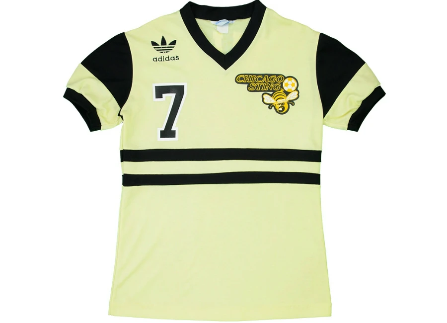 Chicago Sting 1982 player shirt by Adidas believed to have been match worn by Hill in the 1982 campaign. Hill had enjoyed a spell at the Sting in 1973 scoring 16 goals in 21 games before returning to action in England.