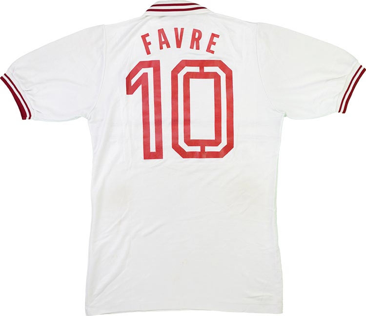 Servette FC 1984-86 player shirt by Adidas believed to have been issued to or worn by Favre during the period the side won the Swiss Championship in 84-85 and reached the Swiss Cup Final in 85-86 but were beaten by FC Sion 3-1 in the Final.