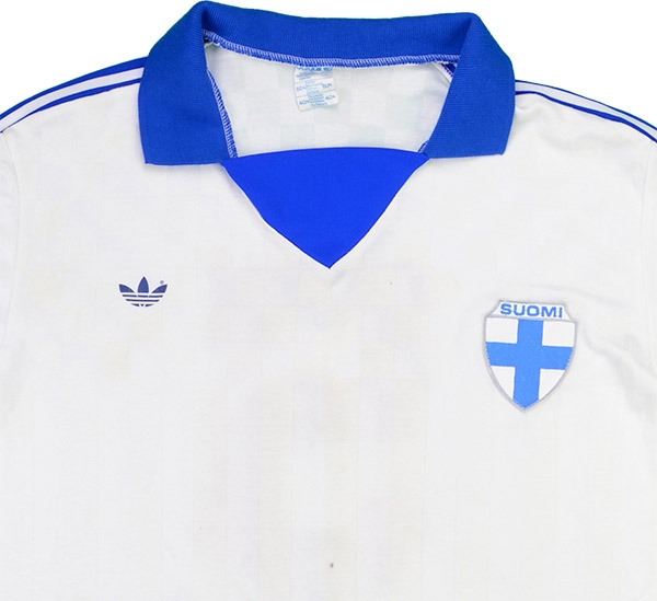 Finland 1986 player shirt by Adidas believed to have been match worn by Petäjä in the Euro 88 Qualification Group 6 match against Wales played at Olympic Stadium, Helsinki on the 10th September 1986.