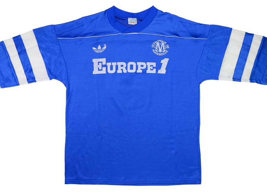 Olympique Marseille 87/88 player shirt by Adidas believed to have been match worn by Giresse in the 1987-88 Cup Winners Cup Semi Final 2nd leg against Ajax played at de Meer on the 20th April 1988.