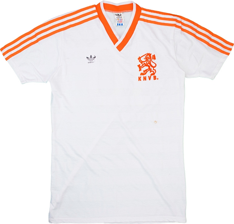 Holland 1987 player shirt by Adidas believed to have been match worn by Mühren in the friendly match against Spain played at the Nou Camp, Barcelona on the 21st January 1987.
